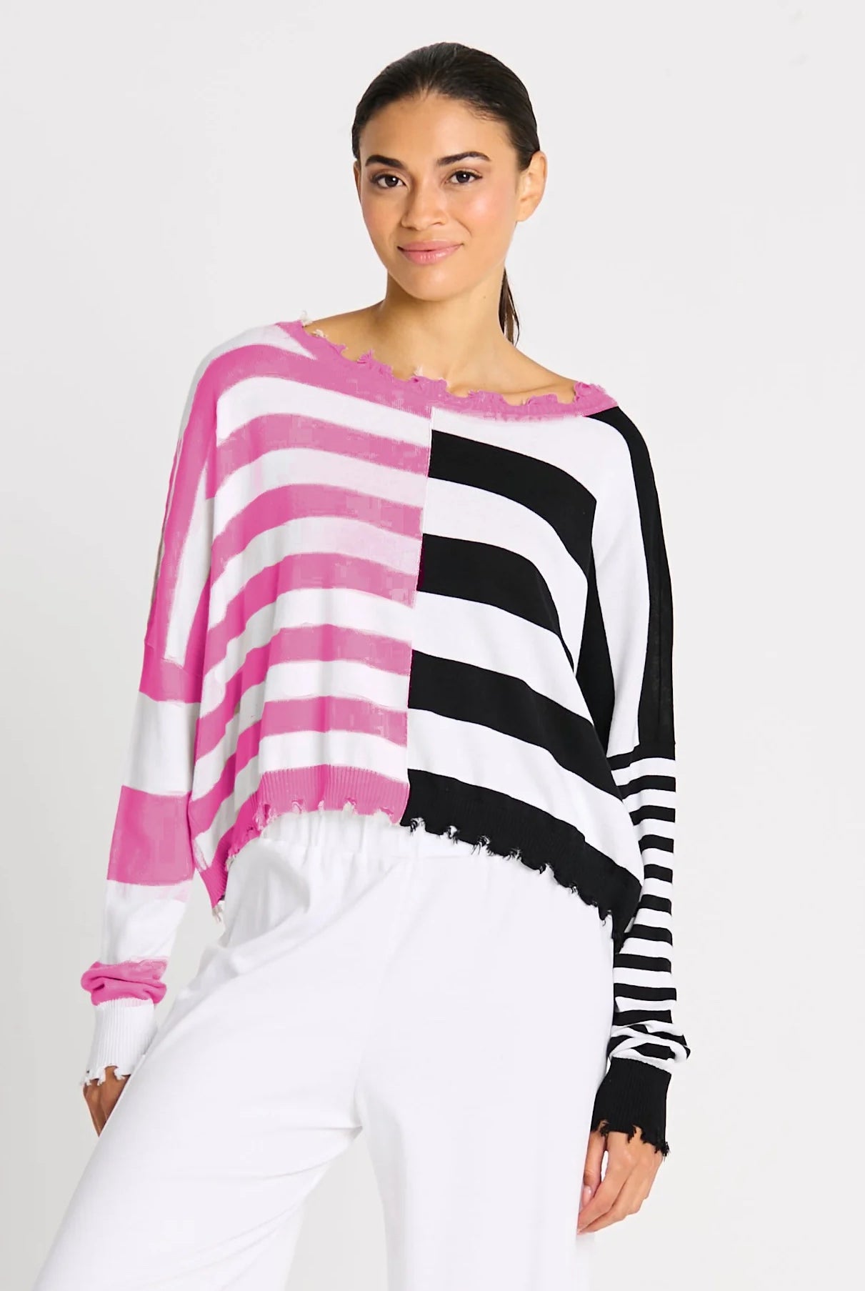Planet Pima Cotton Mini Mixed Up Tattered Crewneck Sweater