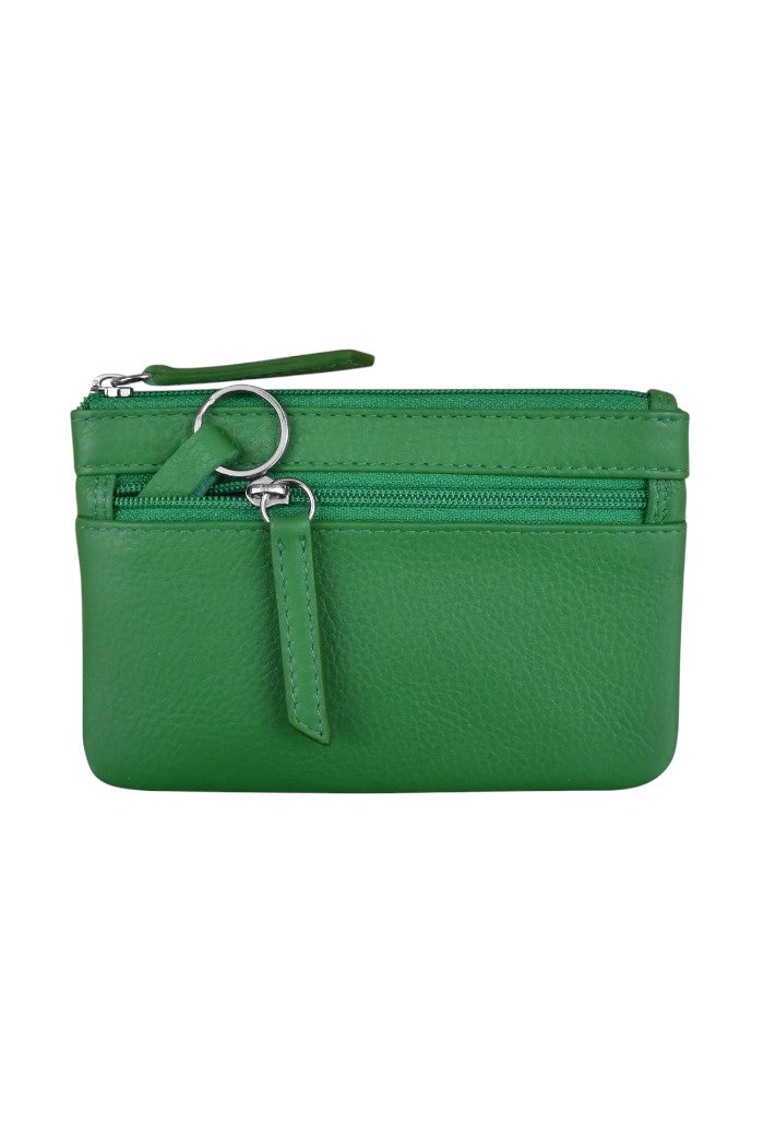 Stay organized on the go with our Smooth Leather Coin Purse with Key Ring. Thoughtfully designed with an RFID-blocking lining to keep your essentials secure, this compact purse features a top zip closure and a convenient front zip pocket with key ring for added versatility. Measuring 5 x 3.5 x .2 inches, it’s the perfect size for carrying coins, cards, and keys in one sleek accessory.