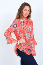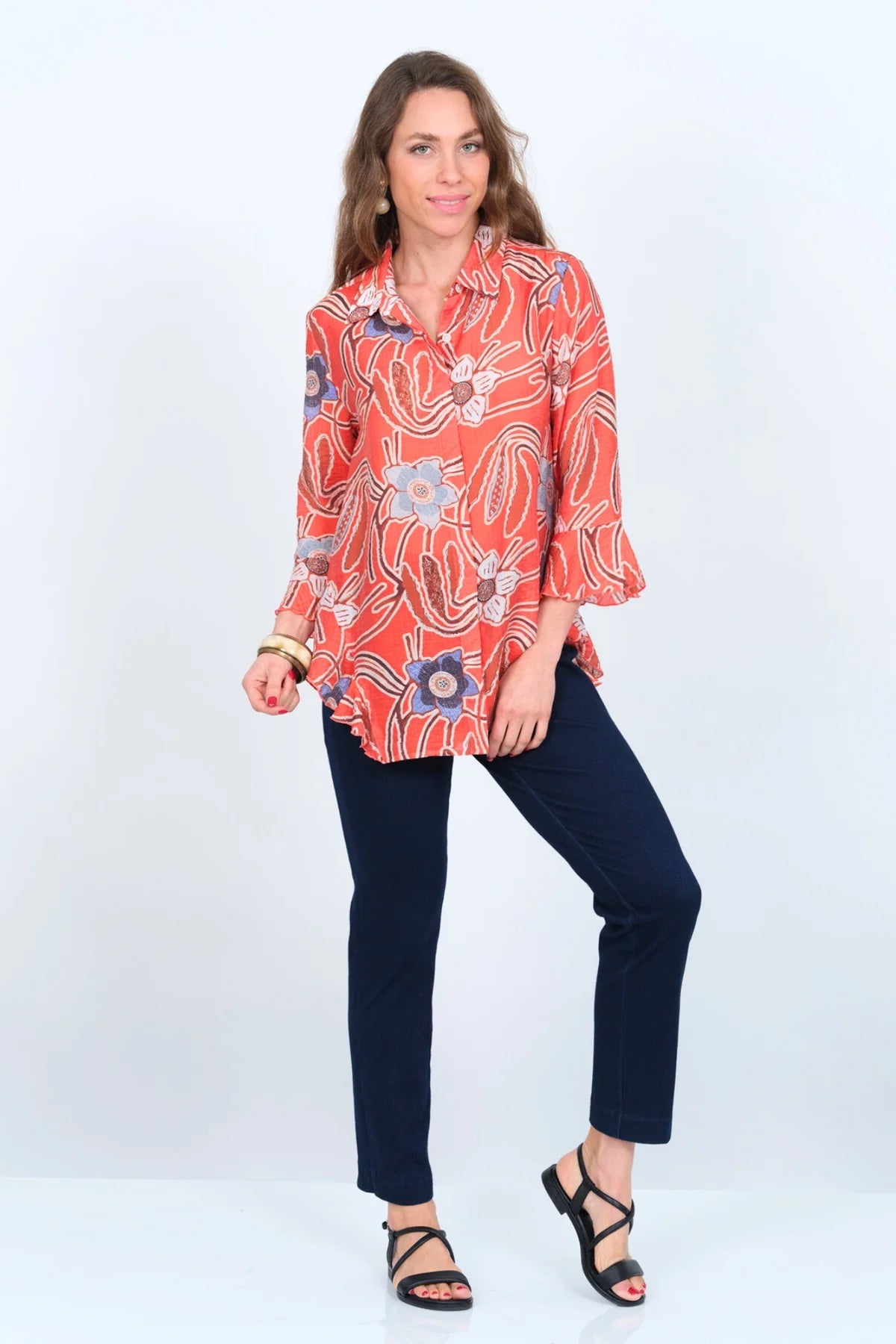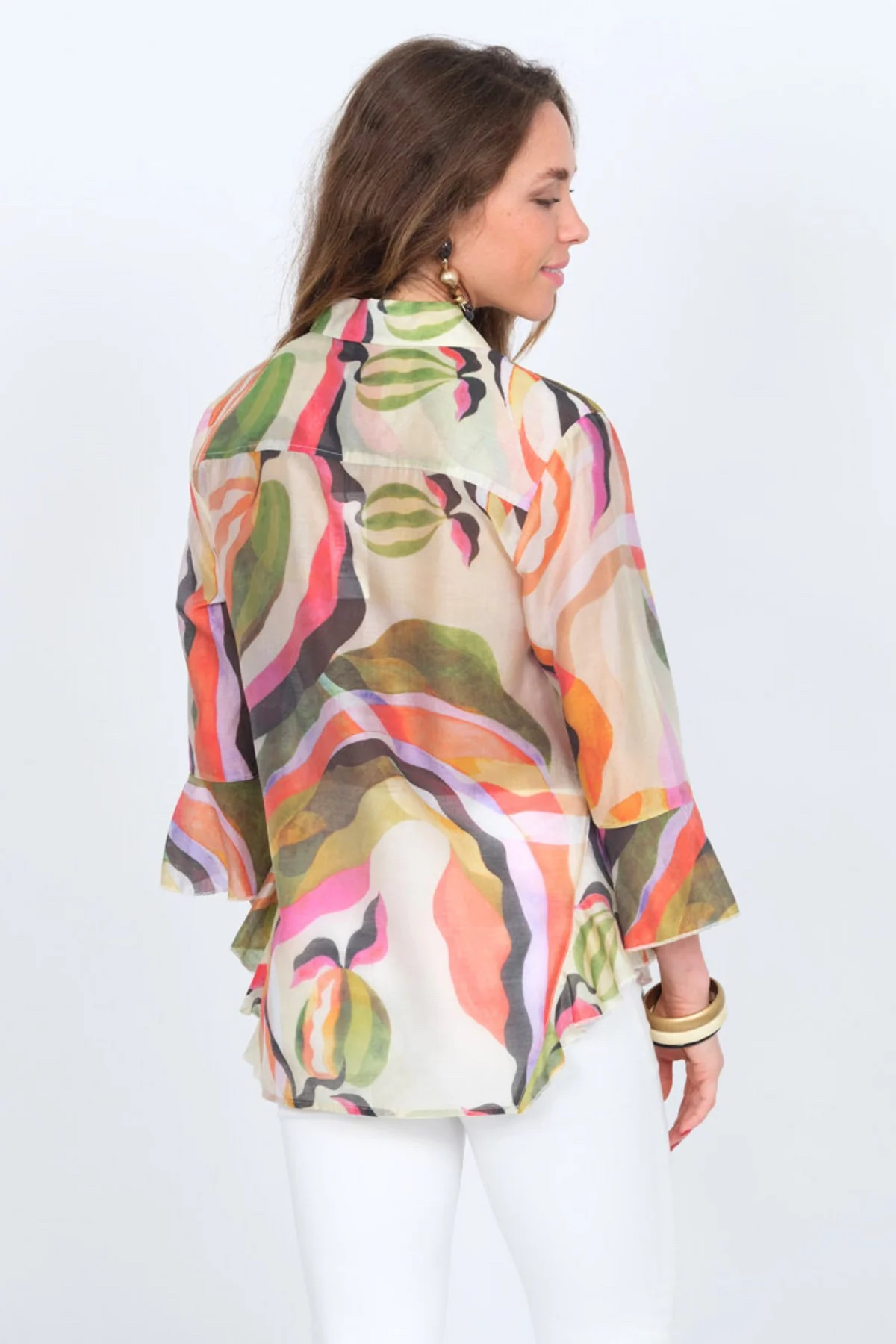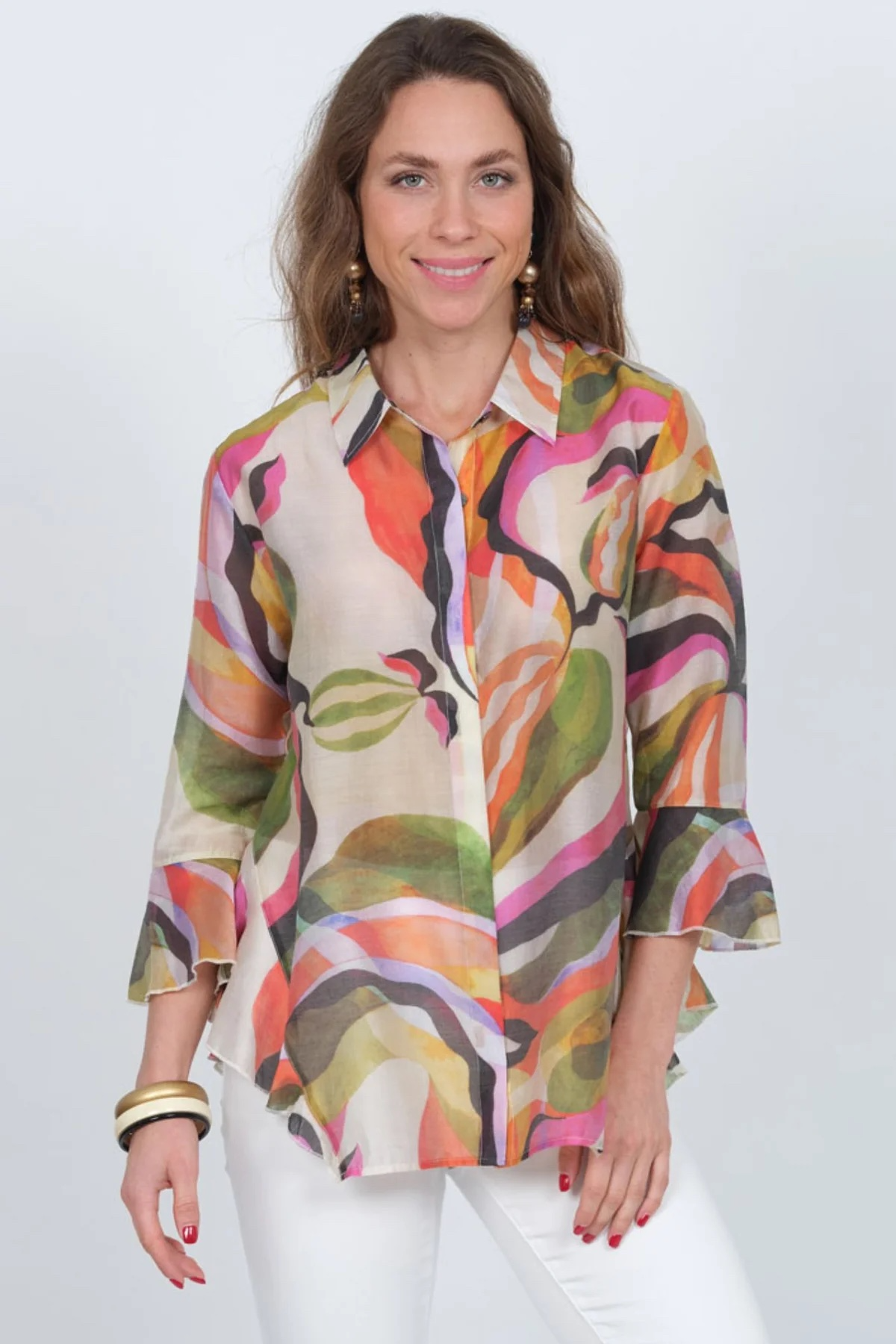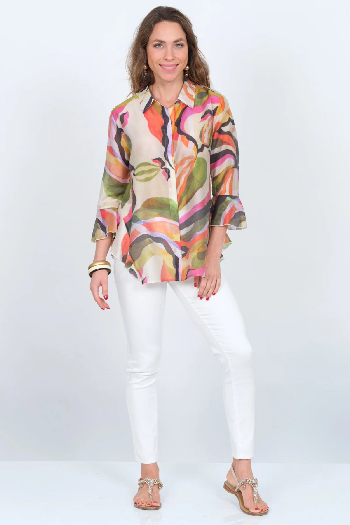 Bring effortless elegance to your wardrobe with the Lior Happy Shirt, a lightweight blouse designed for comfort and movement. Crafted from featherlight fabric, this style features graceful 3/4 bell sleeves and soft side flounces that create a flattering, feminine silhouette. The airy drape makes it perfect for both casual outings and elevated occasions, while its versatile design shines in every variation.