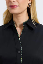 Foxcroft Marlee Green Leopard Trim Long Sleeve Shirt