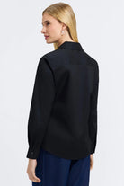 This classic silhouette shows off a sleek wide placket and crisp tailoring, but look closer — variegated green leopard lining peeks from inside the collar and down the front placket for a touch of the unexpected. It’s a polished essential with just enough edge to keep things interesting. Style it buttoned up for clean contrast or pop the collar to show off the print. Either way, it goes with everything from denim to dress pants.