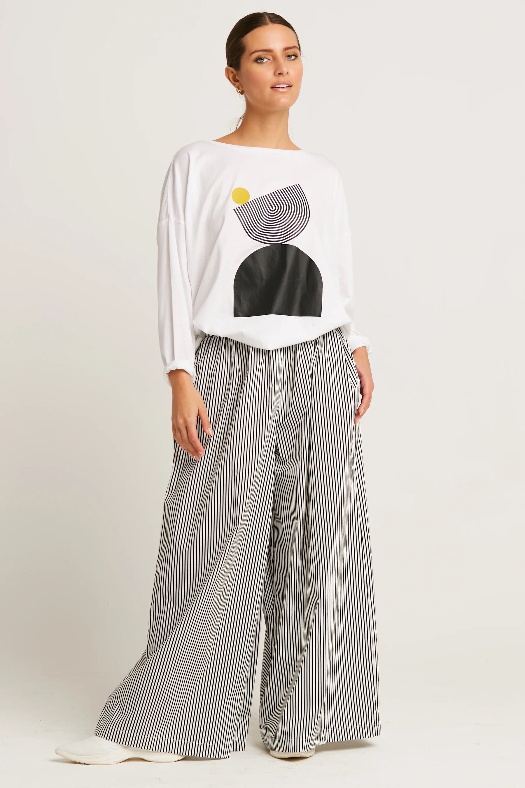 Discover effortless elegance with these cotton palazzo pants from Planet, crafted for comfort and movement. With a flowy silhouette and elasticized waist, they strike the perfect balance between structure and ease. The lightweight fabric ensures breathability and versatility, whether styled with a statement top or a cozy knit. Designed to complement every figure, these wide-leg trousers are ideal for elevating your everyday or special occasion wardrobe.