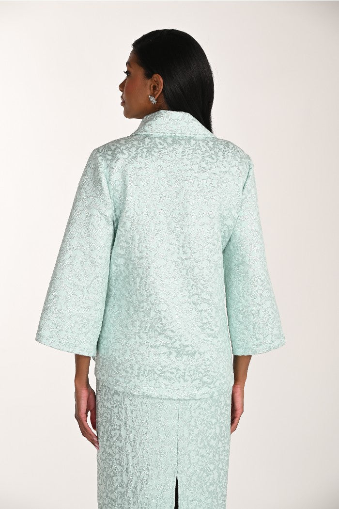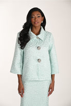 Add timeless sophistication to your wardrobe with this pastel-hued jacket from Frank Lyman. It features a refined woven knit design in a serene baby blue/aqua tone that transitions beautifully from day to evening. This jacket celebrates quality tailoring and versatile elegance — perfect layered over a dress or paired with tailored pants for polished office and weekend looks. It’s a standout piece for any season.