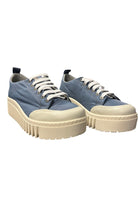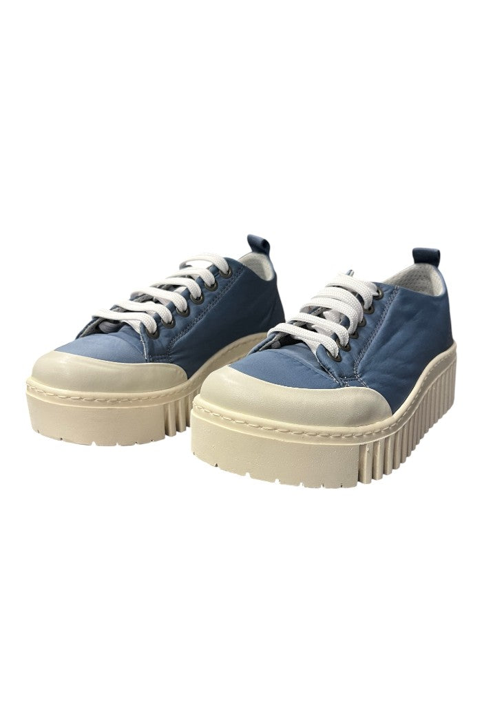 A chunky low-top sneaker with a sculpted, ridged platform sole and soft blue canvas upper. The 1534 Ocean Brighton Sneaker pairs casual off-duty attitude with street-ready polish for everyday wear. This style is by The Art Company and features a rubber platform sole and canvas construction for a lightweight, wearable finish.