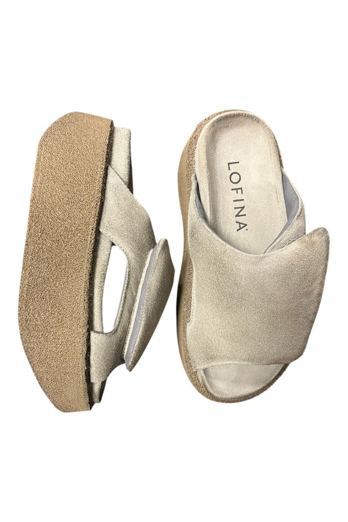A chunky platform slide in soft suede pairs a thick, textured sole with a wide open upper for easy on-and-off wear. This Lofina sandal is crafted in suede with a pronounced platform that elevates while keeping the look casual. It’s ideal for day and weekend outings where comfort meets bold, modern style.
