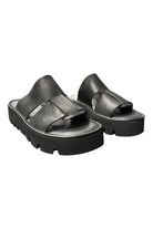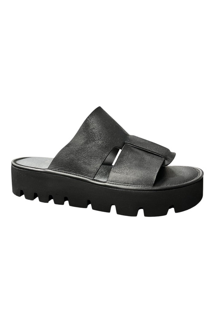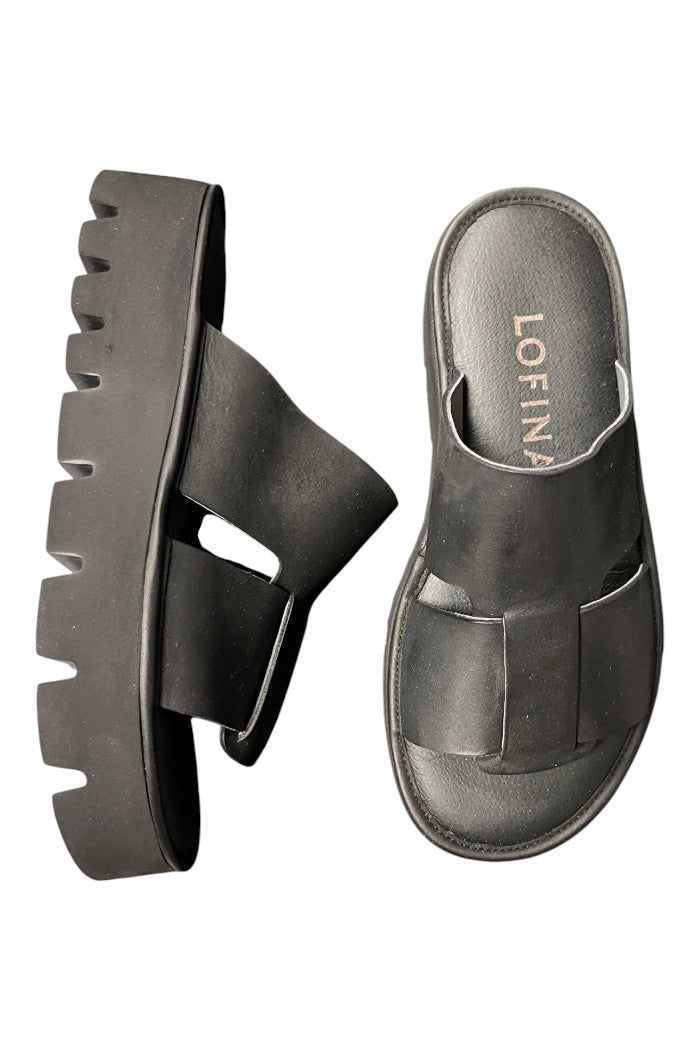 The Lofina Sandals are a chunky platform slide with wide crossover straps and a lugged rubber sole for modern edge and everyday comfort. Lofina designed these sandals with a smooth leather-like upper layered over a thick rubber platform that adds height without sacrificing stability. Their slip-on silhouette and treaded sole make them perfect for off-duty weekends or on-the-town styling. Pair them with relaxed denim or a breezy dress for an effortless, elevated casual look.