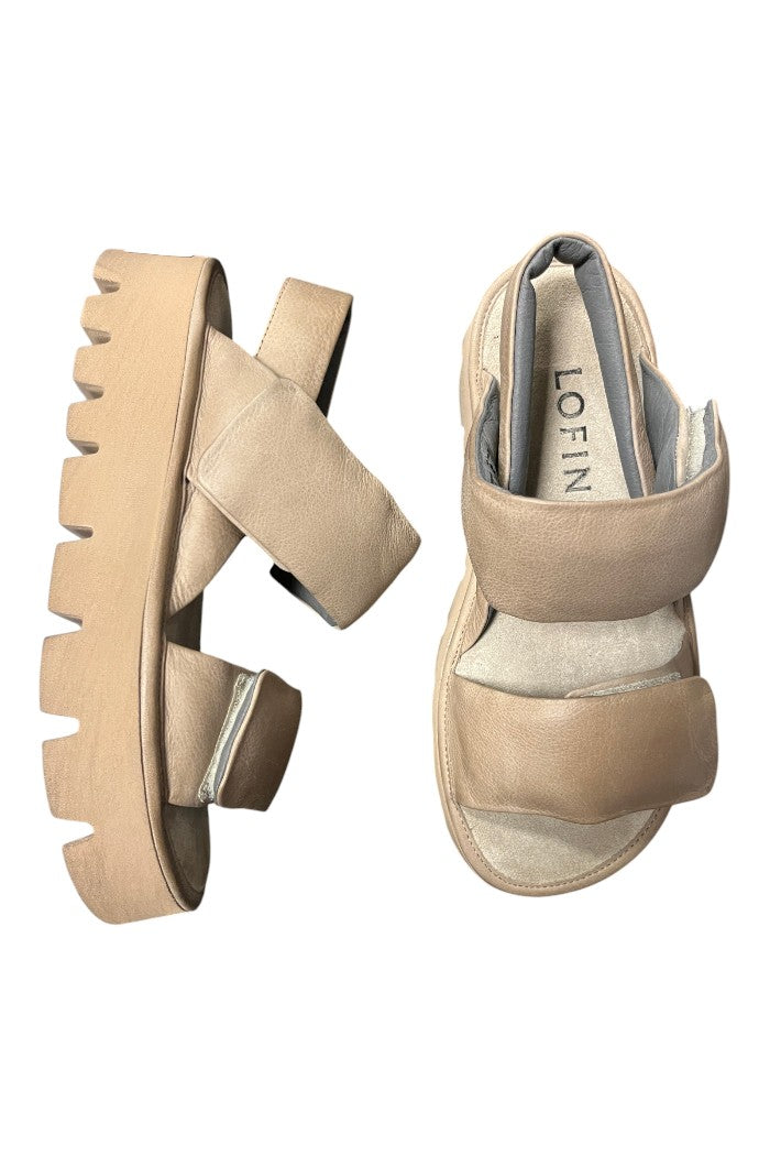 The 9540 Sandals are a chunky platform sandal with wide hook-and-loop straps and a lugged sole for elevated off-duty style. The upper is in leather with a cushioned footbed for day‑long comfort. The thick rubber platform gives these sandals substantial height and traction for casual city wear. Lofina balances modern edge and wearable design in this neutral-toned pair.