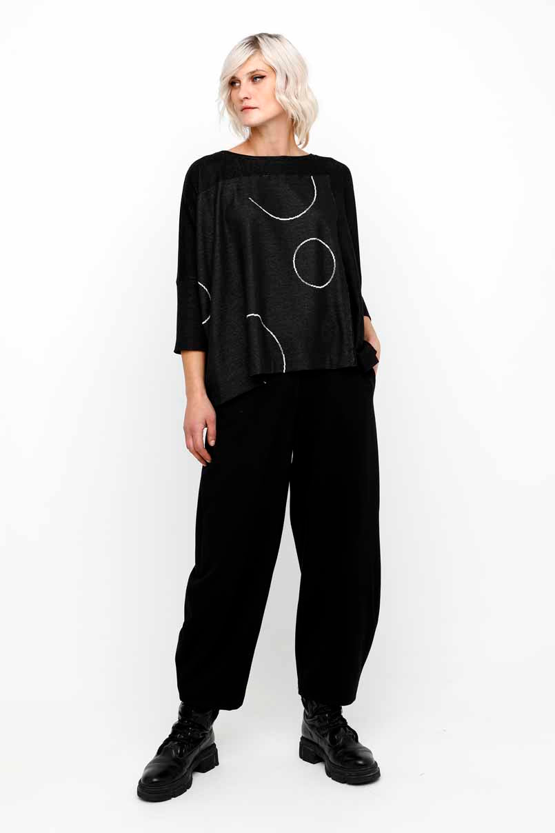 Elevate your everyday with the 766037 Jersey Square-Cut Top, a modern essential with sculptural simplicity and a striking printed motif. Its clean lines and bold circular design create a look that’s both minimalist and expressive.