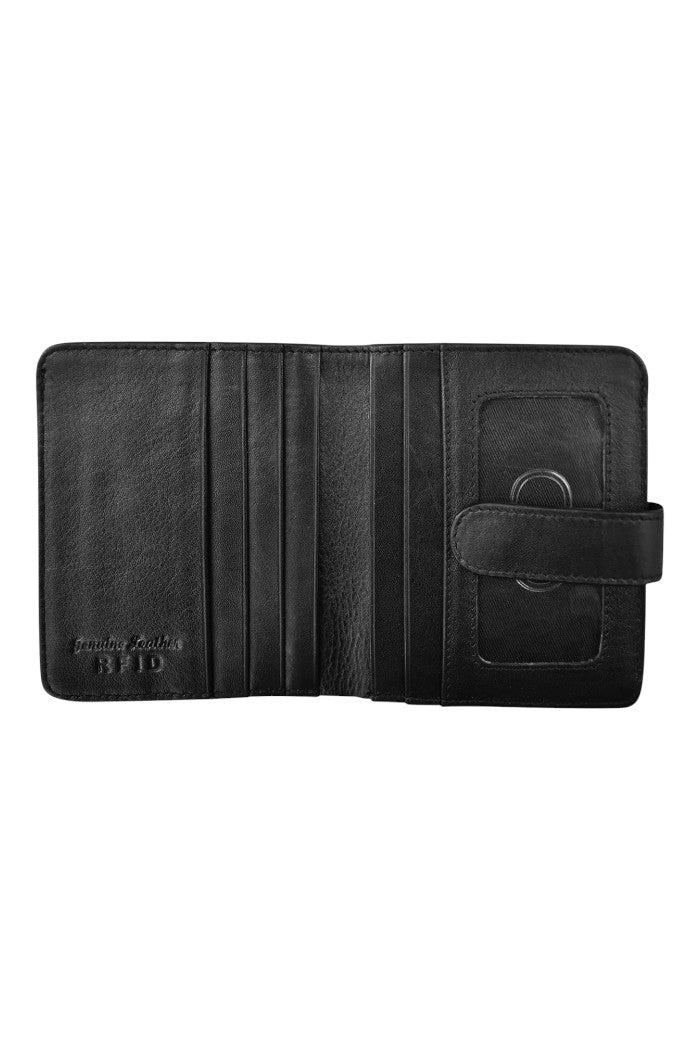 Interior 12 credit card slots, ID window, and currency compartment