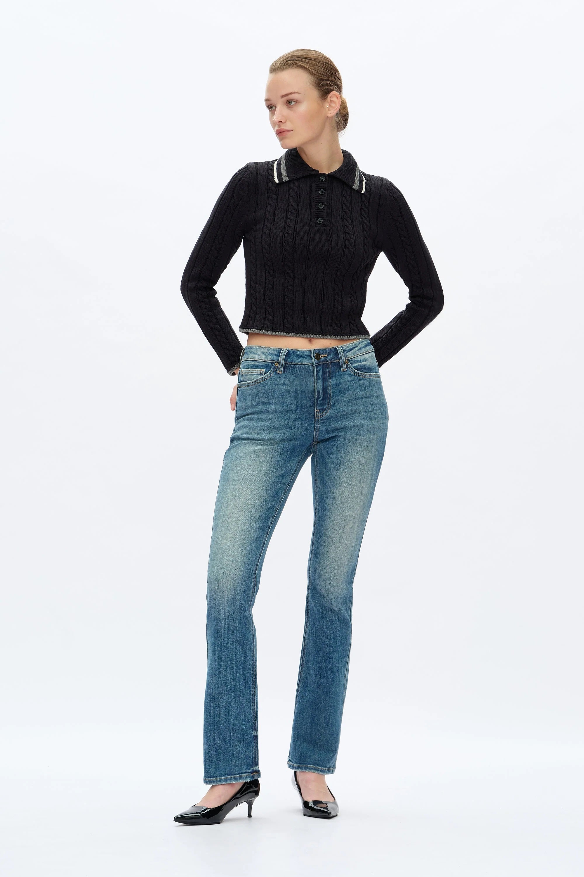 Classic bootcut style with a modern twist. These jeans feature a sleek, mid-rise fit that flatters your figure and a vintage-inspired wash.