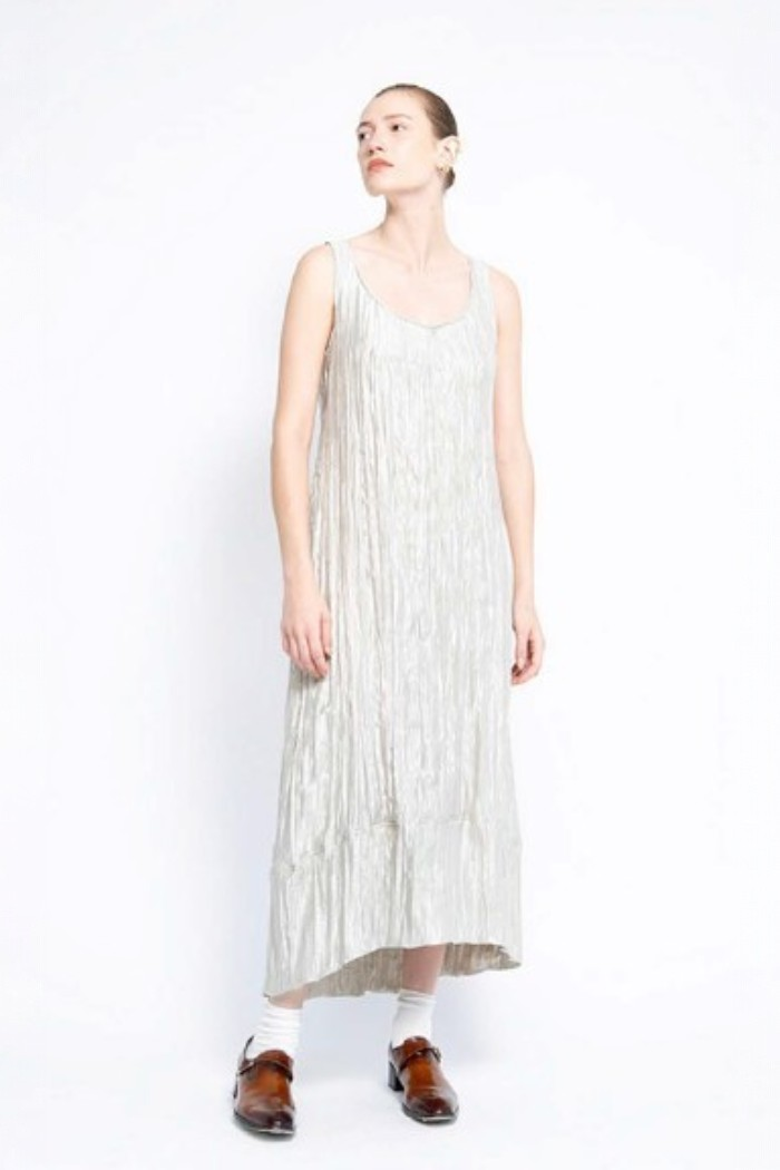An airy, ankle-skimming maxi with a softly pleated finish and relaxed slip silhouette. The Phoenix Dress is sleeveless with thin straps and a subtle hi-low hem that moves with you. Designed by Gershon Bram, it reads as modern yet easygoing—perfect for warm-weather weekends and resort escapes. Pair it with sandals for daytime or a clutch for relaxed evening looks.