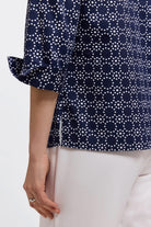 Foxcroft Tammy Geo Circles 3/4 Sleeve Popover Shirt
