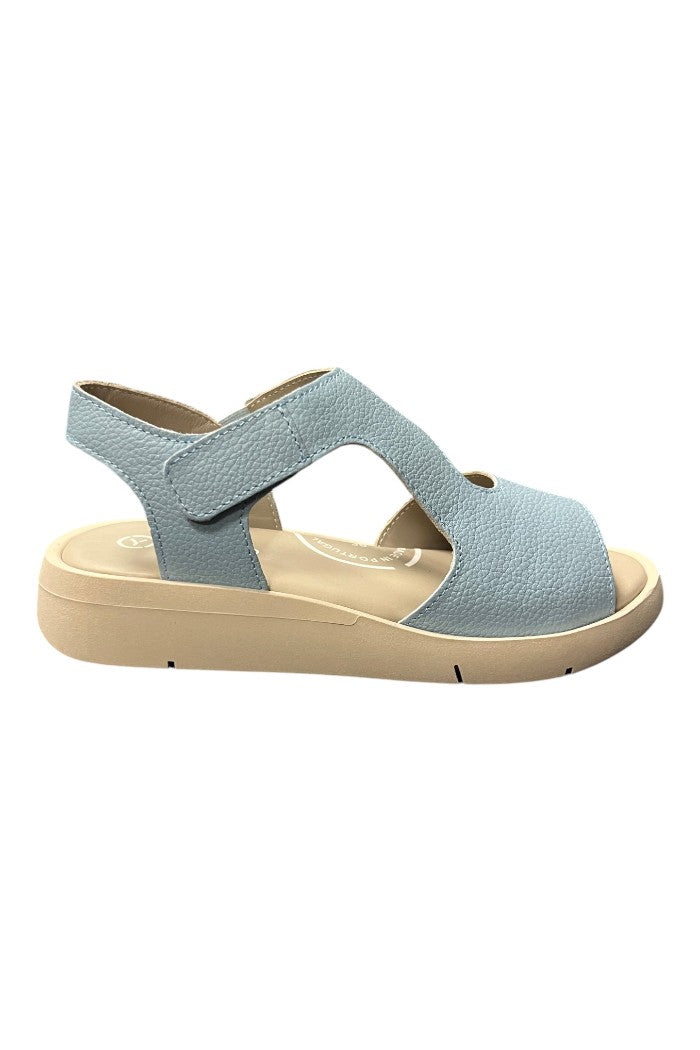 A casual open-toe sandal with a pebbled upper, slingback strap and cushioned platform sole for all-day comfort. The Felicity Sandal is designed with a hook-and-loop strap for an adjustable fit and a soft footbed for steady support. This style is offered by Sole Mio and suits relaxed, off-duty days or warm-weather getaways.