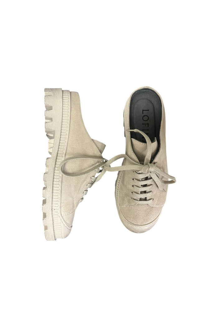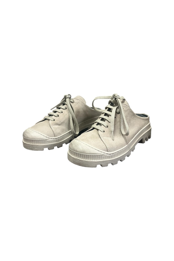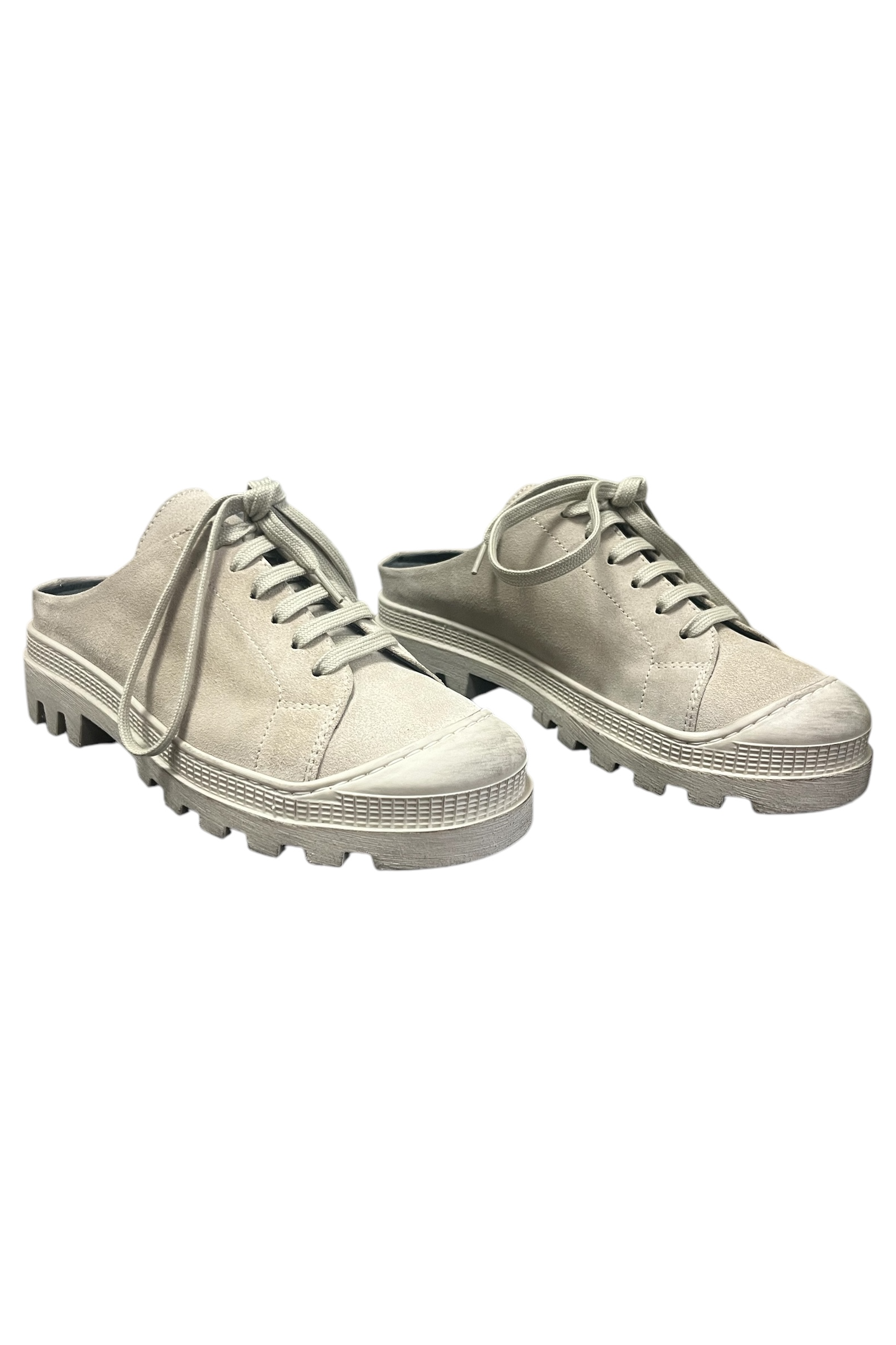 This shoe combines classic aesthetics with modern functionality. It features an open heel and is made of light suede with a matching sole. The design includes laces for easy adjustment to your foot. All Lofina shoes are produced at a small family-owned factory in central Italy using carefully selected and exclusive local materials.