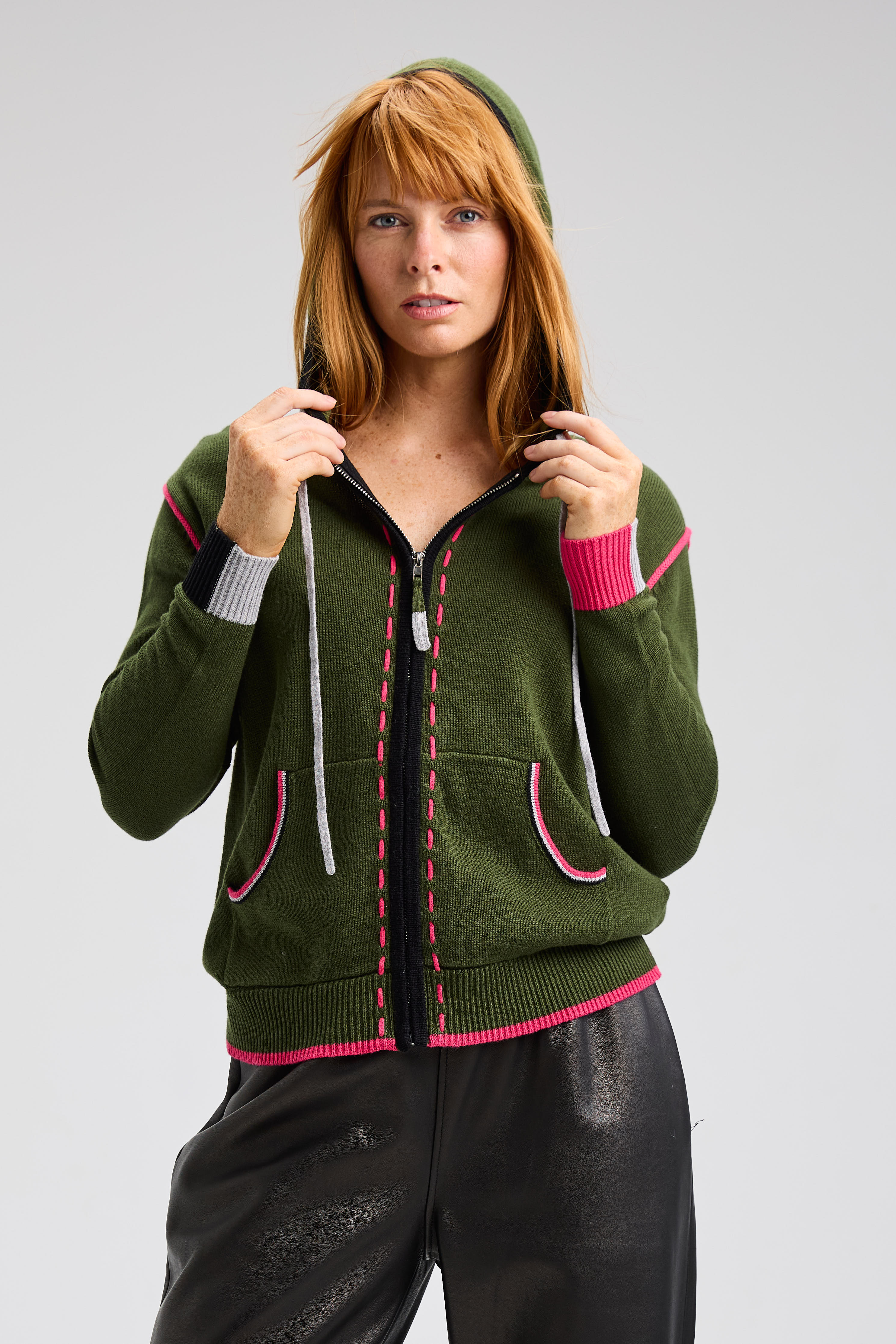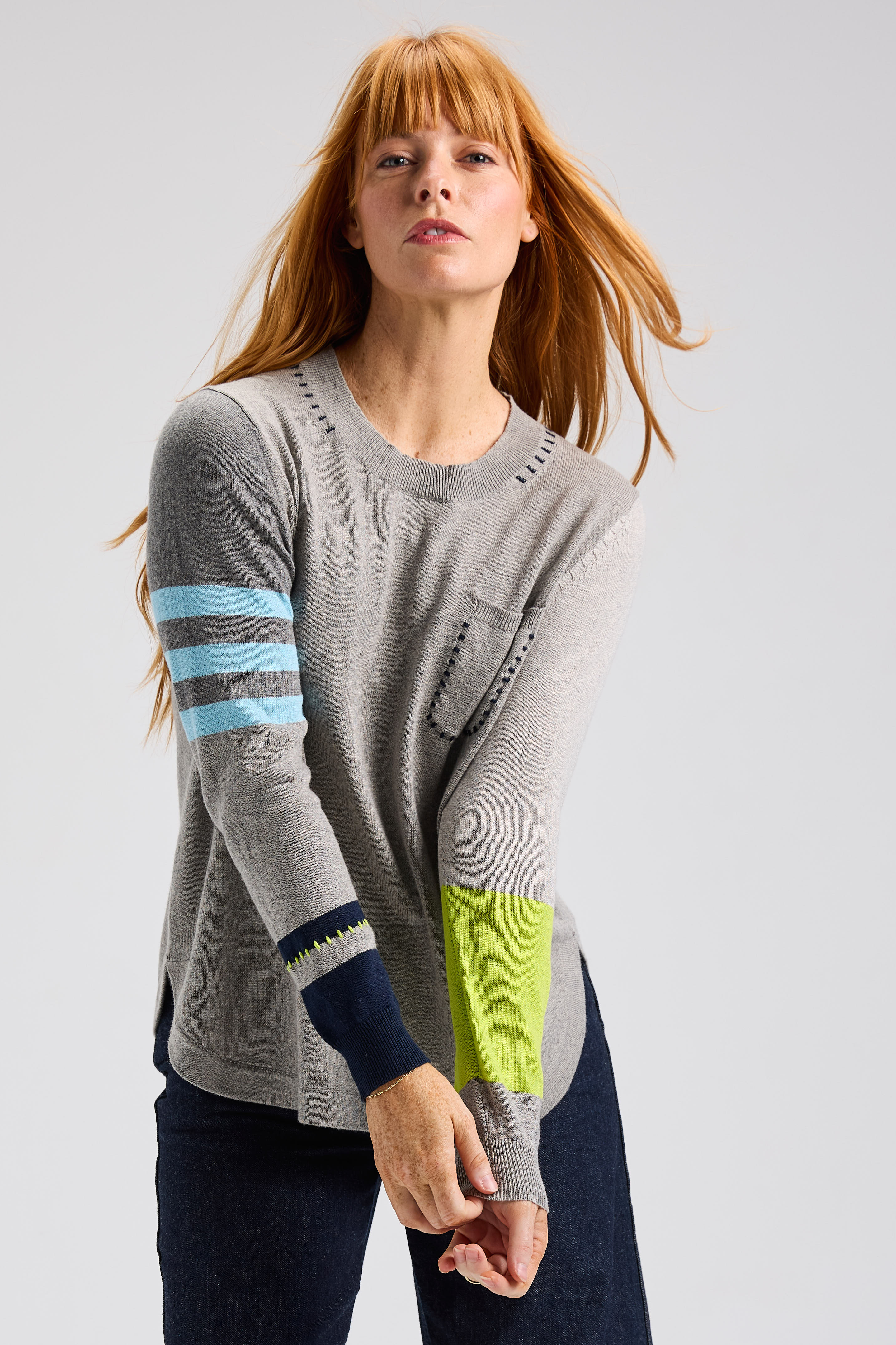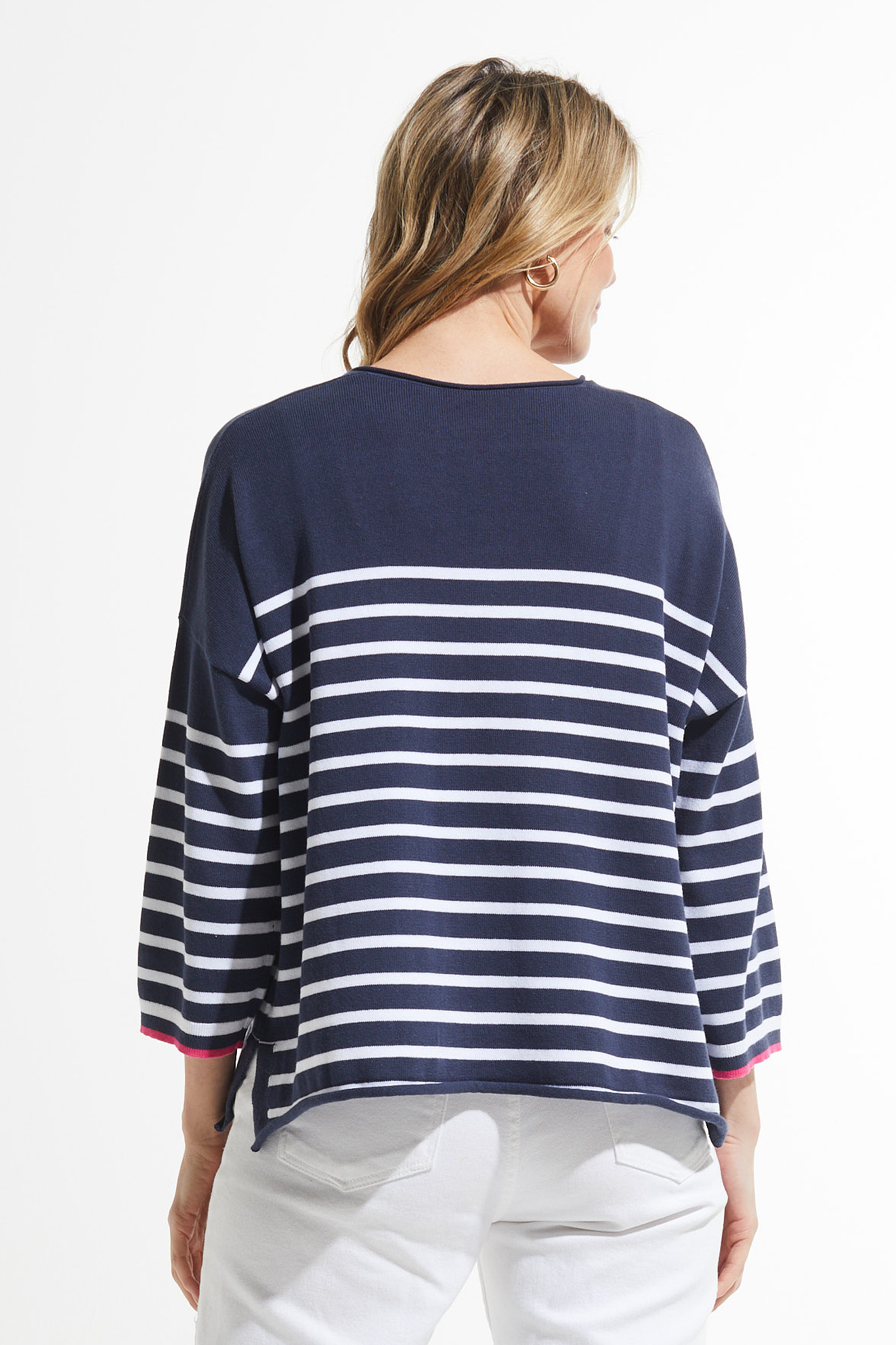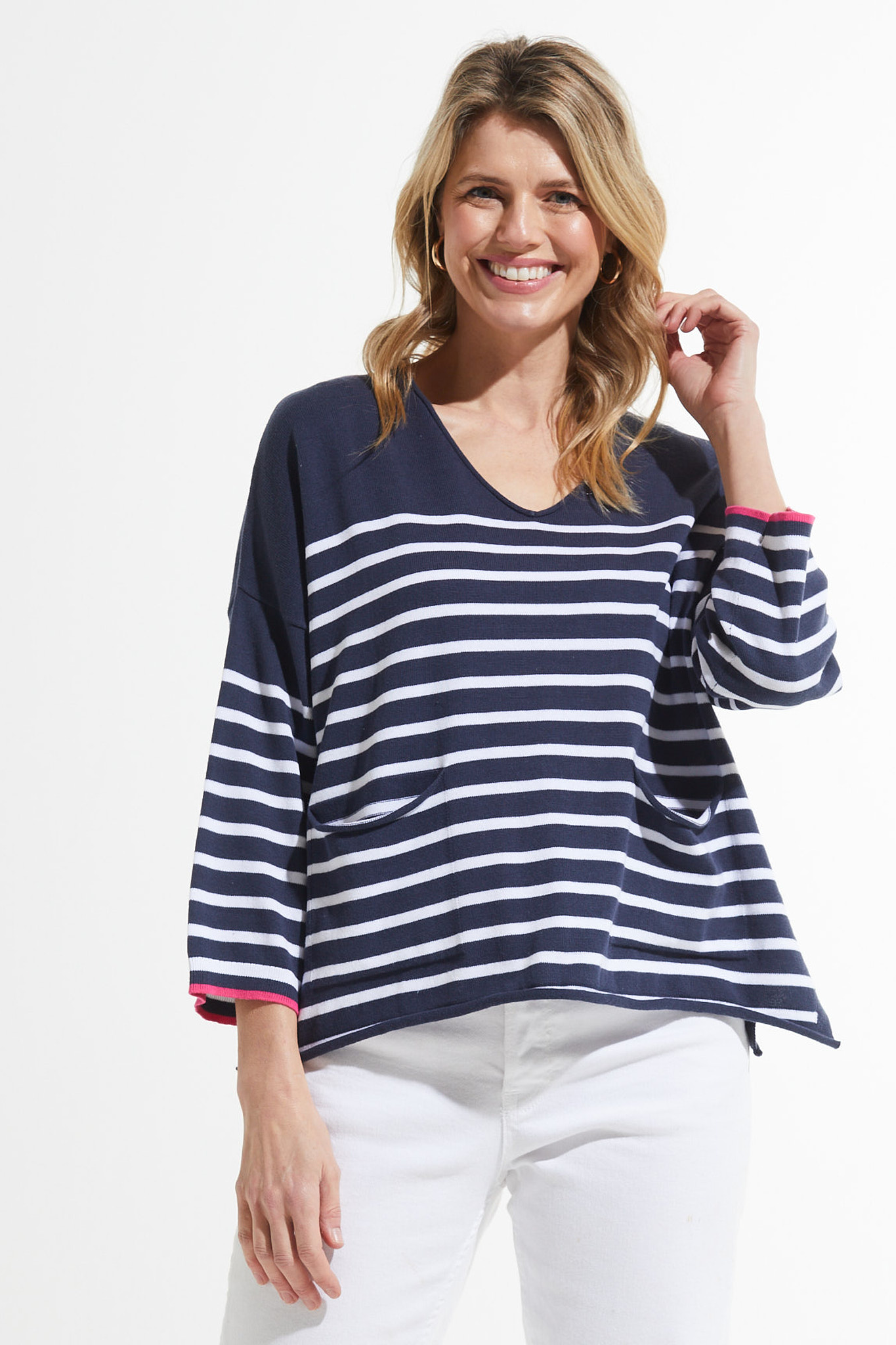 Zaket & Plover Contrast Stripe V-Neck Sweater