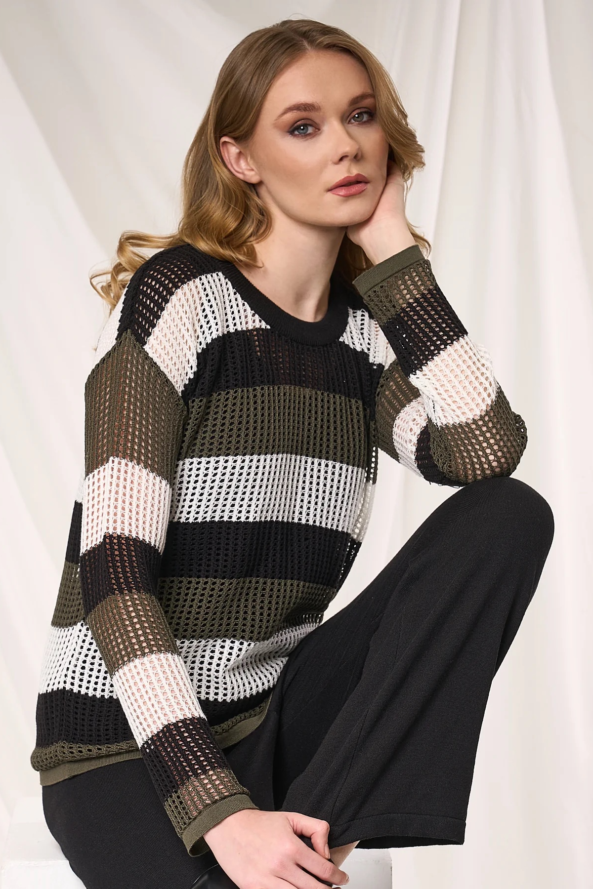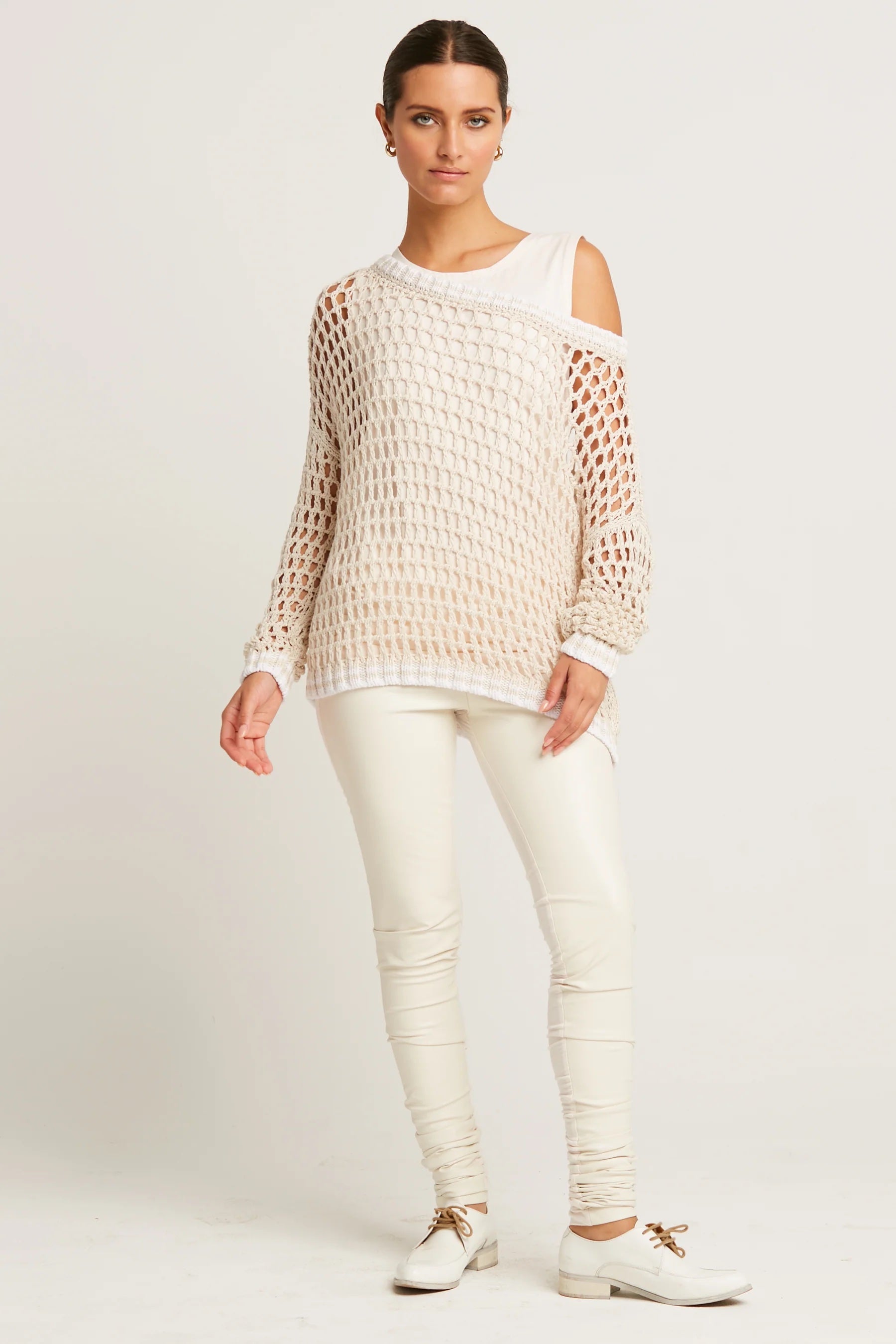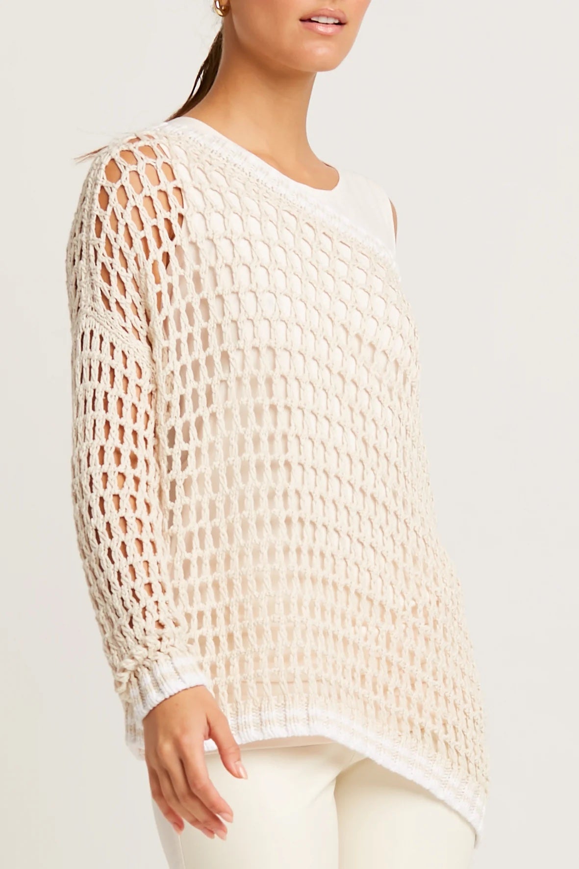 Planet Pima Cotton Fisherman Boatneck Fishnet Sweater