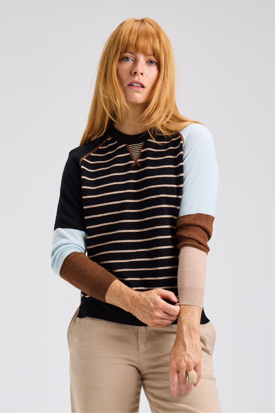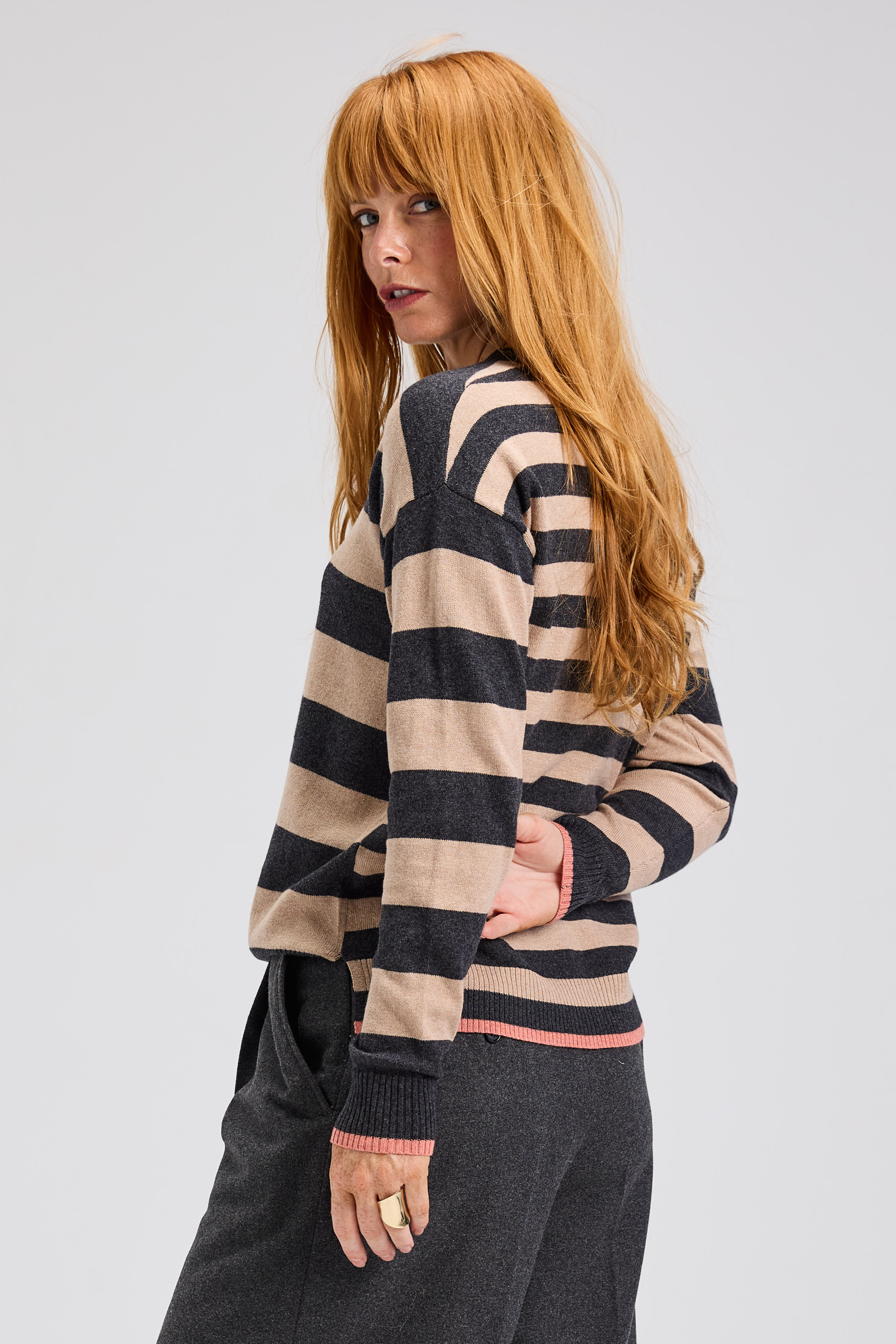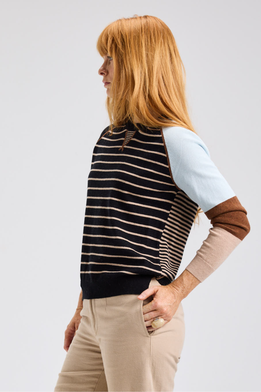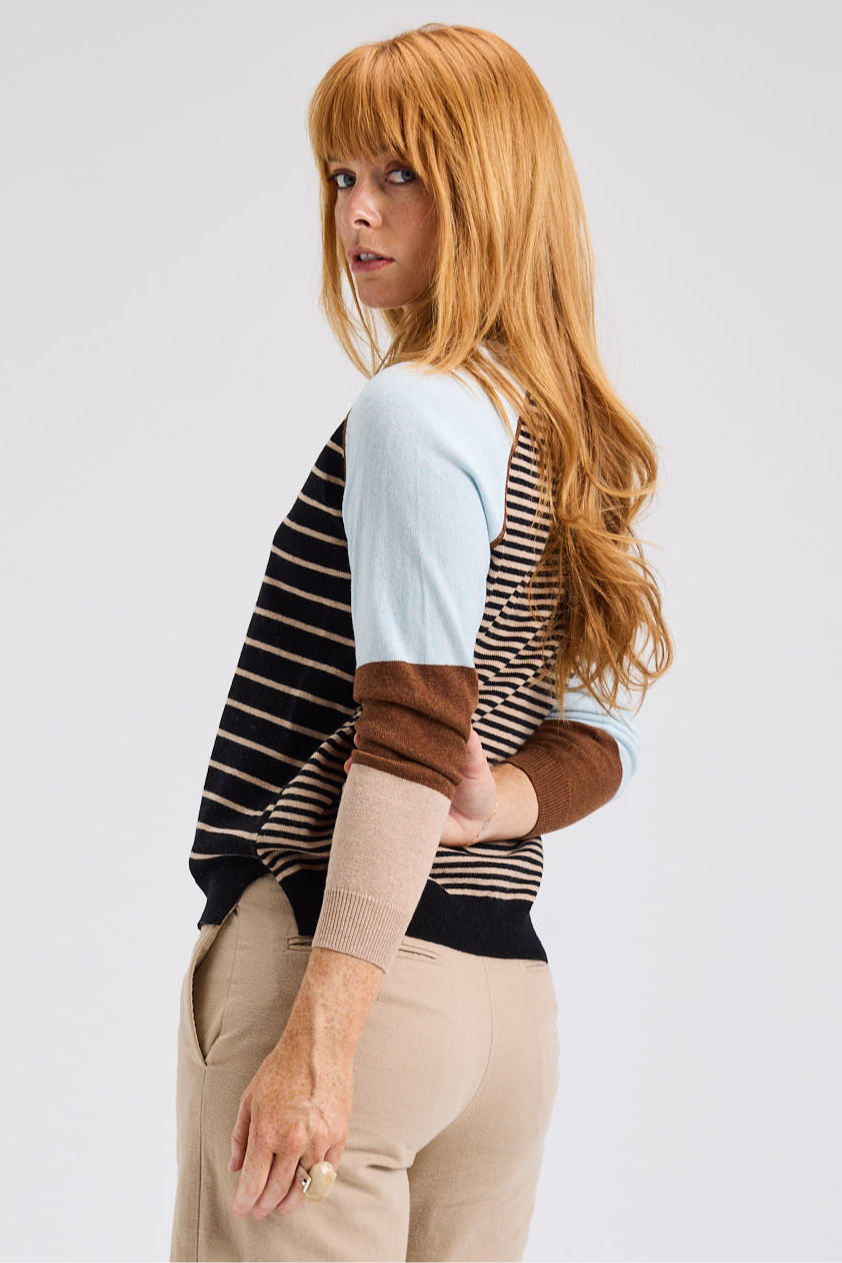 Zaket & Plover Varied Stripe V-Neck Sweater