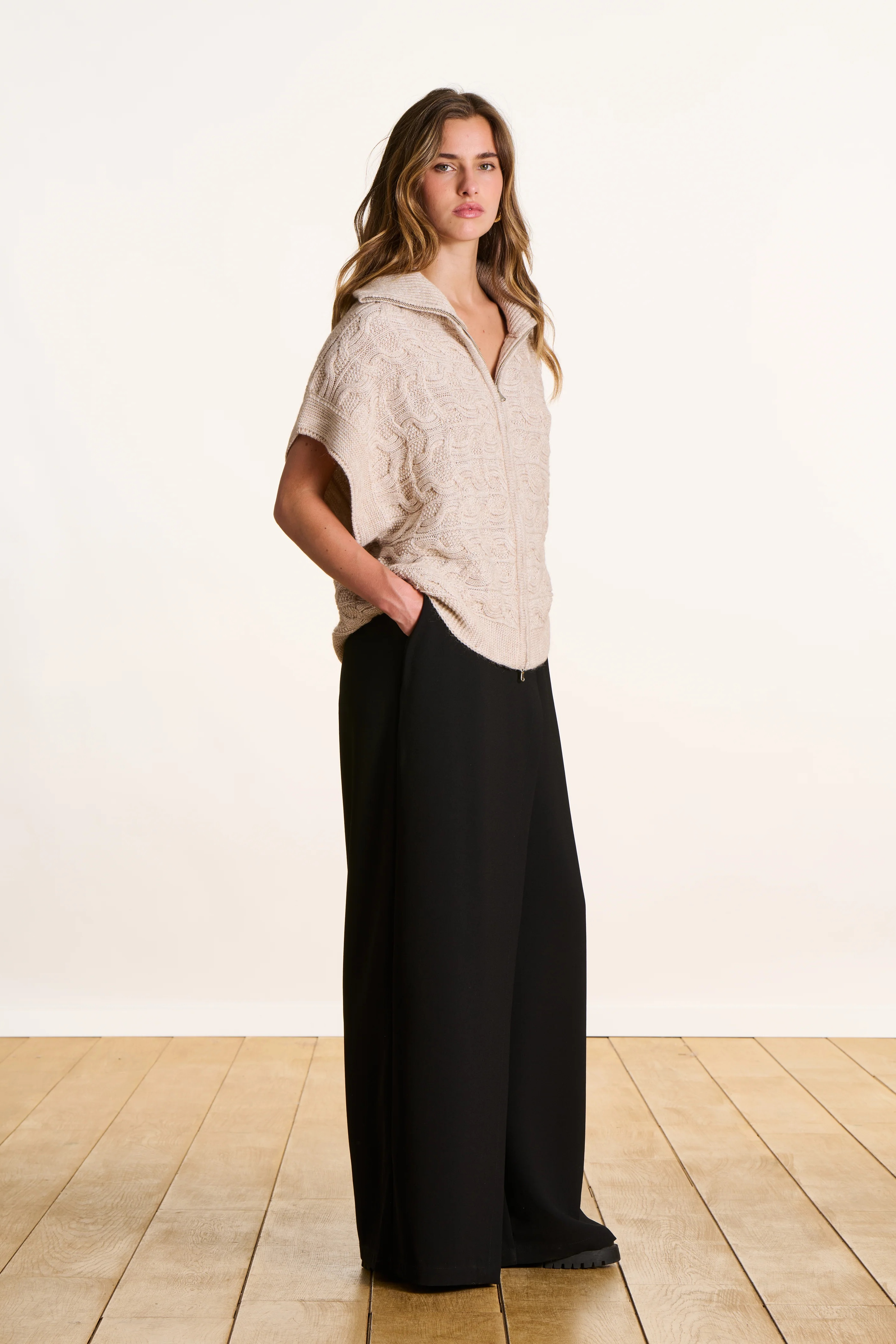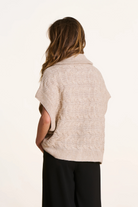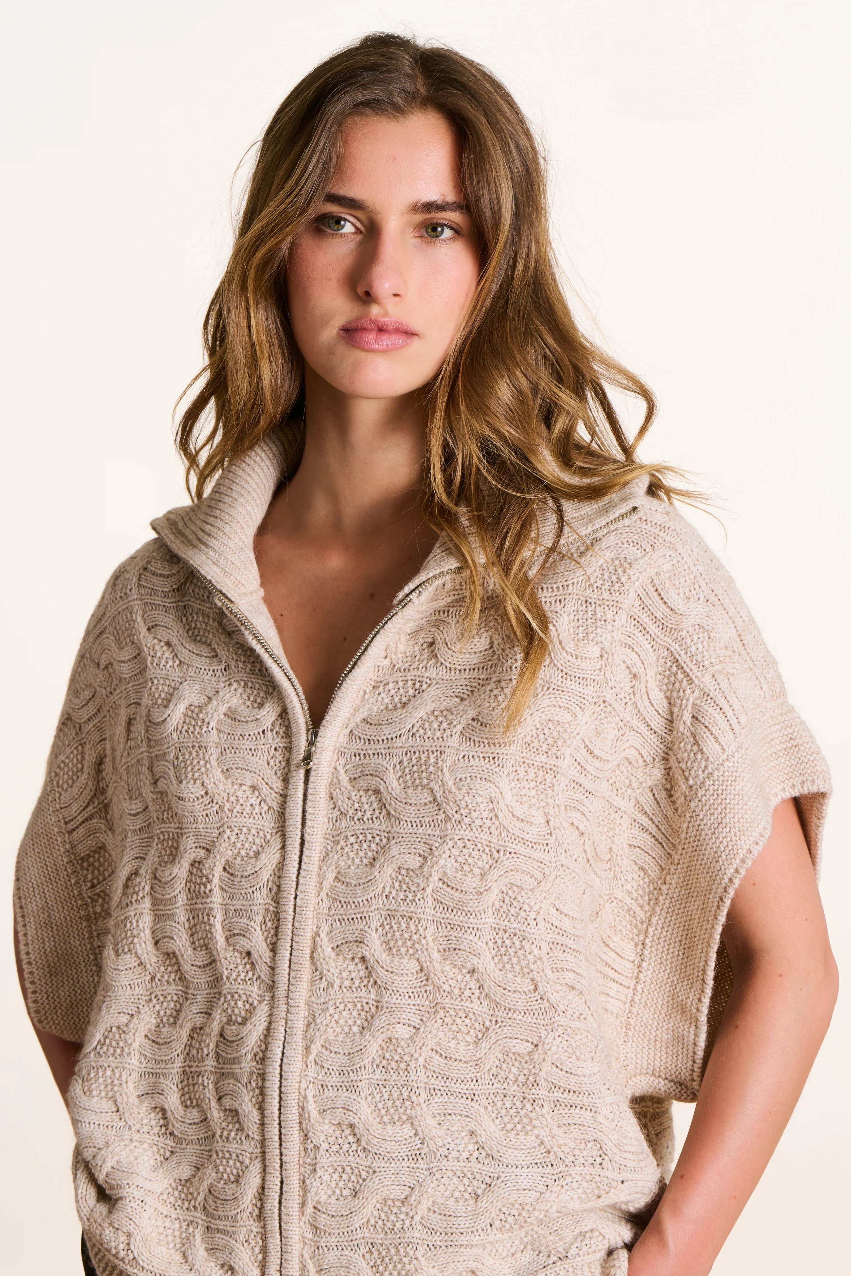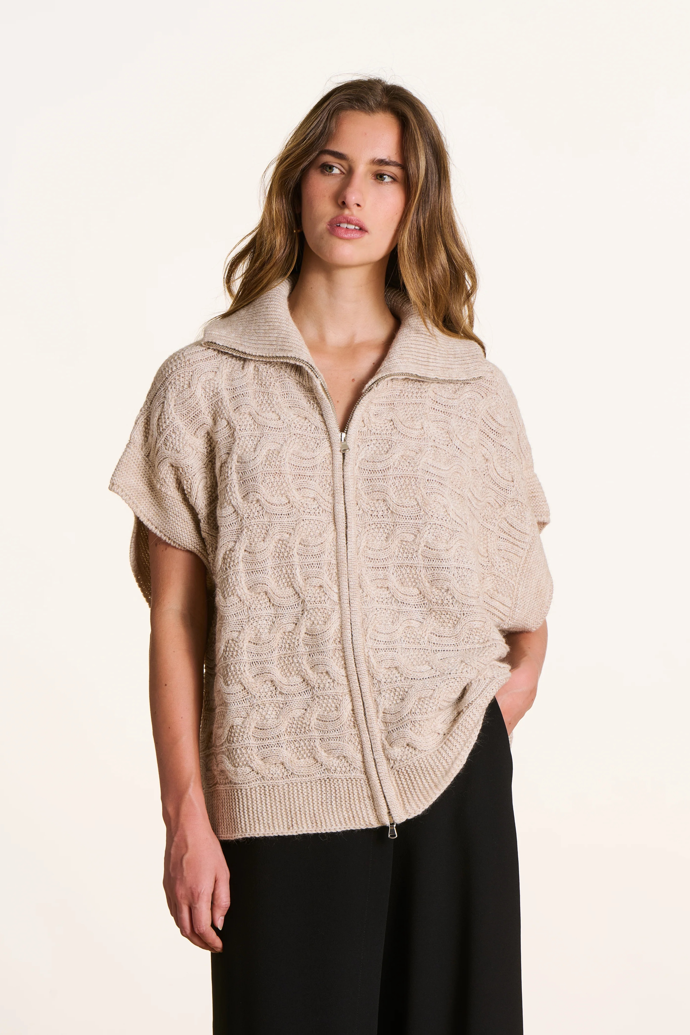 La Fée Maraboutée Beige Cable Knit Trucker Vest with Short Sleeves