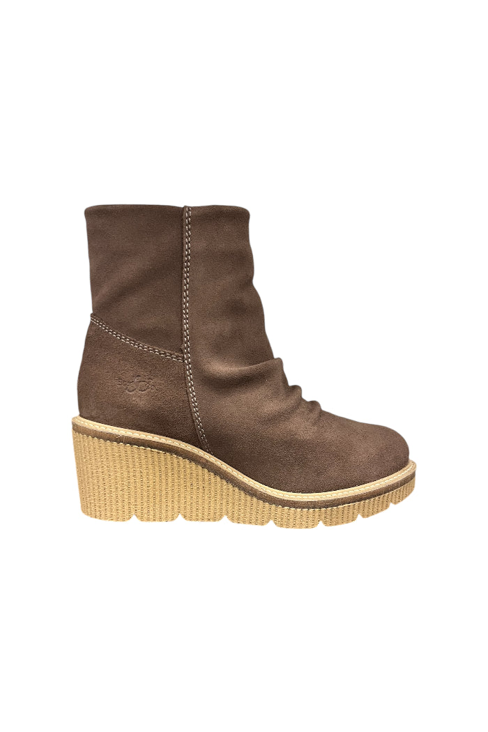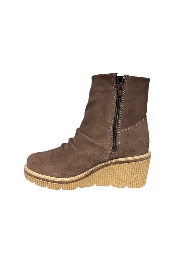 This stylish suede boot features a rich brown hue, complemented by a comfortable wedge sole for all-day wear. Its slouched design adds a touch of casual elegance, while the stitched detailing provides a refined finish. Perfect for elevating your everyday look with ease.