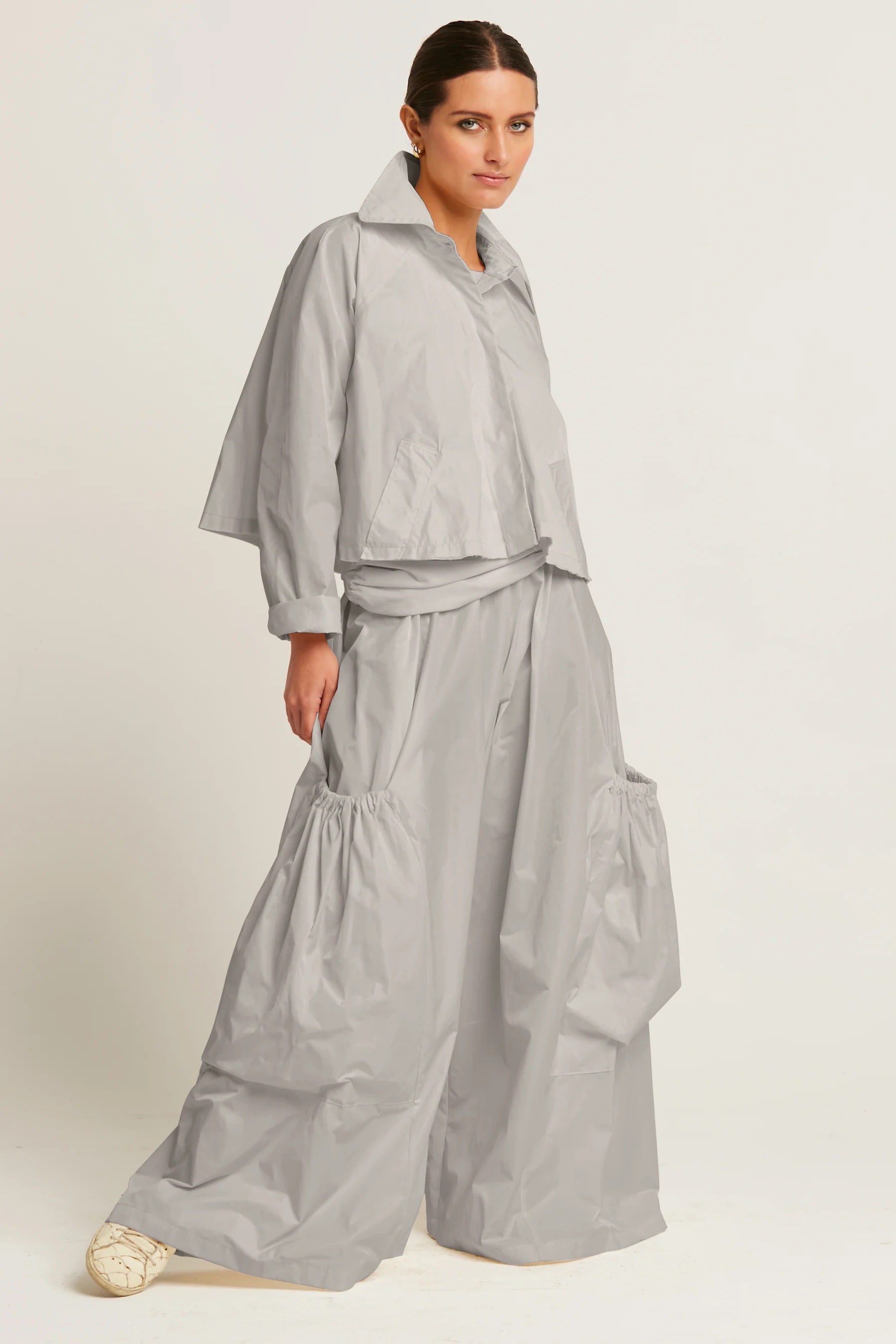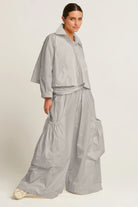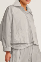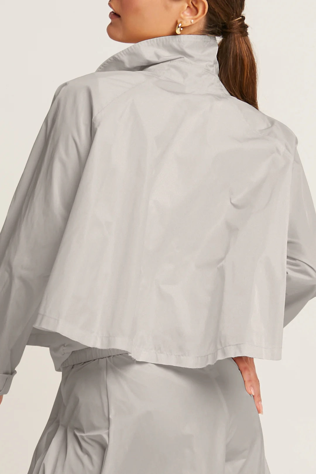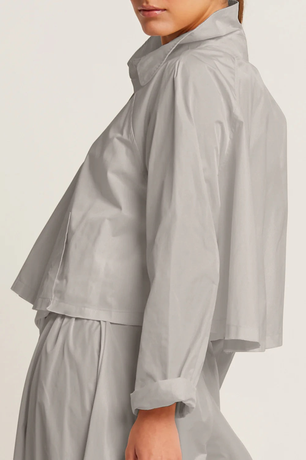 This cropped swing jacket from Planet brings modern elegance to everyday style. Made from lightweight, breathable nylon, it features a structured high collar and a flowy hemline for a flattering silhouette. Designed for easy layering over tops or dresses, it’s a polished yet versatile piece that moves effortlessly from casual days to refined evenings.