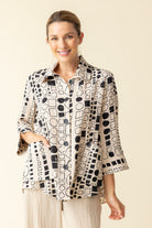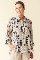 Stay effortlessly chic in the Habitat Express Travel Circle Party Tunic. Designed in a soft oatmeal hue with a bold black pattern, this tunic blends comfort and style for any occasion. The lightweight, travel-friendly fabric makes it a go-to choice for on-the-go days, while the relaxed fit and flattering silhouette ensure all-day ease. Subtle details like the rounded hem and breezy design add a playful touch, making it perfect for both casual outings and elevated looks.