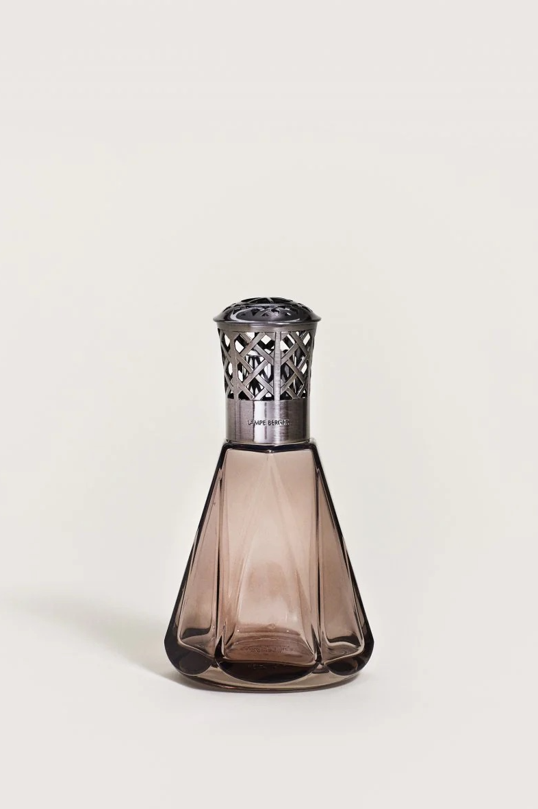 The Vintage Pink Pyramide Lamp combines both contemporary and classic charm into a timeless decorative object. The many facets of the lacquered glass shimmer and shine, in a soft, elegant vintage shade and pyramid shape. The pewter latticework cap sits majestically atop the lamp body.