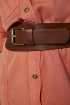 Back on the scene: the waist belt! Your outfit is incomplete without good accessories, and this sophisticated basic should definitely form part of your collection. This wide belt has an asymmetric shape, creating a playful effect. Due to its simplicity, this item adds the finishing touch to any outfit.